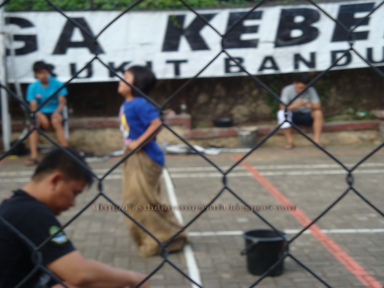 Dalam rangka memeriahkan hari kemerdekaan RI yang ke 67, RW akan mengadakan berbagai perlombaan untuk anak-anak dan dewasa, yang akan diadakan pada tanggal..... Perlombaan-perlombaan untuk anak-anak adalah..... Demikianlah kira-kira pemberitahuan yang disampaikan oleh panitia HUT Kemerdekaan RI ke 67, yang kami baca pada selebaran yang dibagikan ke rumah-rumah. Ketika membaca selebaran itu, saya bertanya kepada Kasih apakah dia ingin ikut perlombaan. Kasih langsung mengiyakan, karena dia memang suka mengikuti berbagai kegiatan seperti itu. Tahun lalu dia ikut perlombaan yang aneh, yaitu menjilat permen yang ditempelkan ke mukanya, dan berhasil mendapat hadiah :)).
